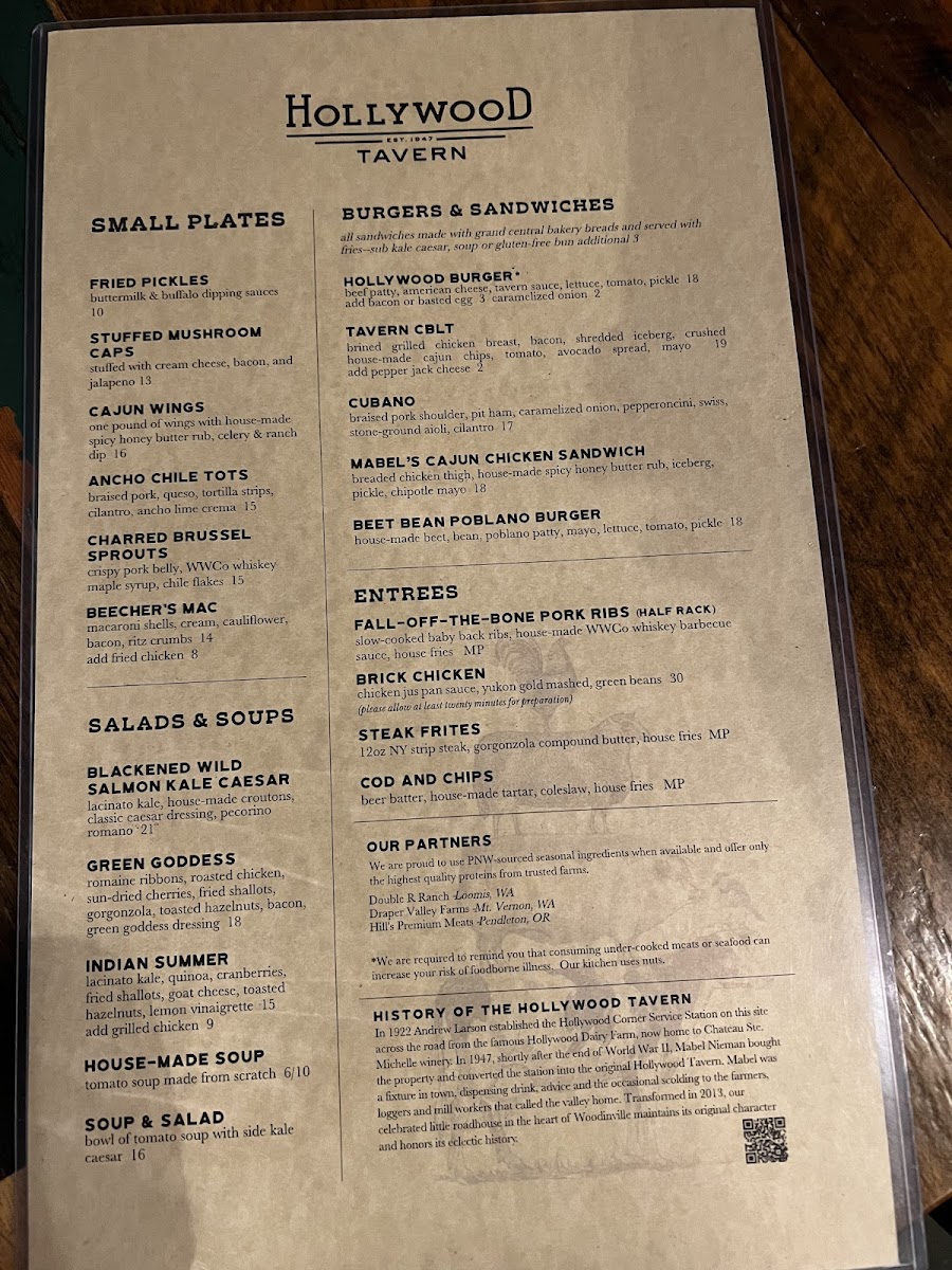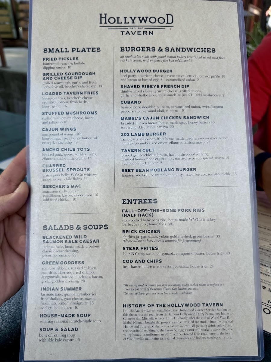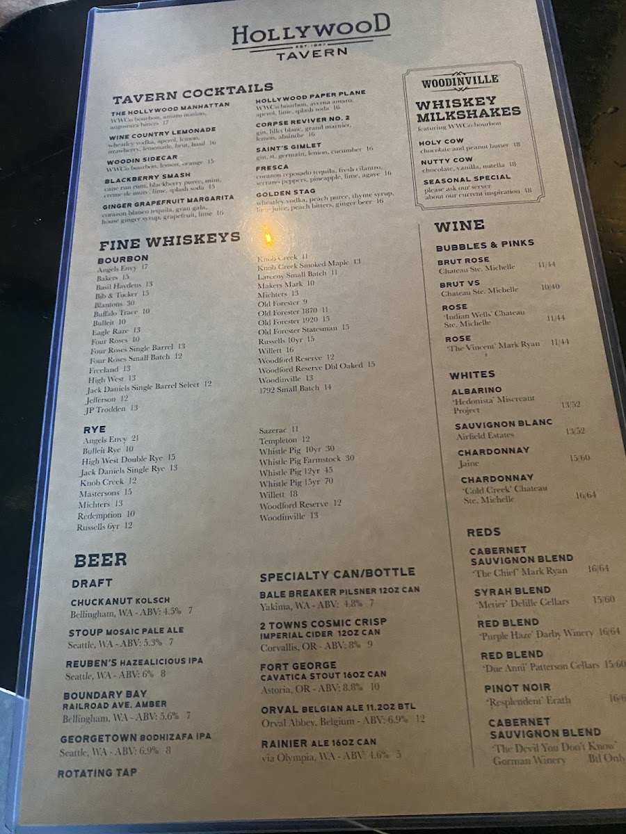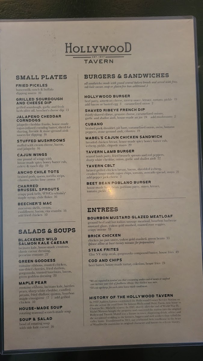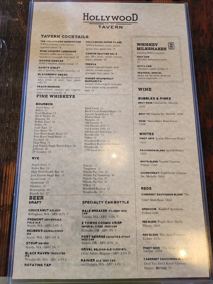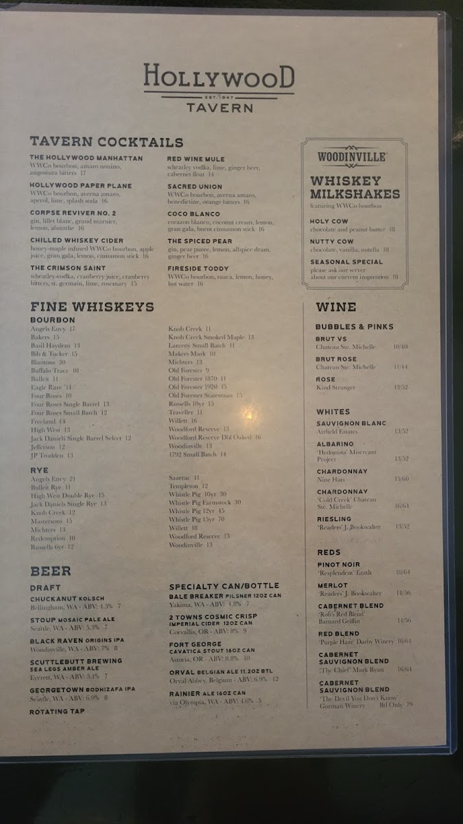 Hollywood Tavern Menu